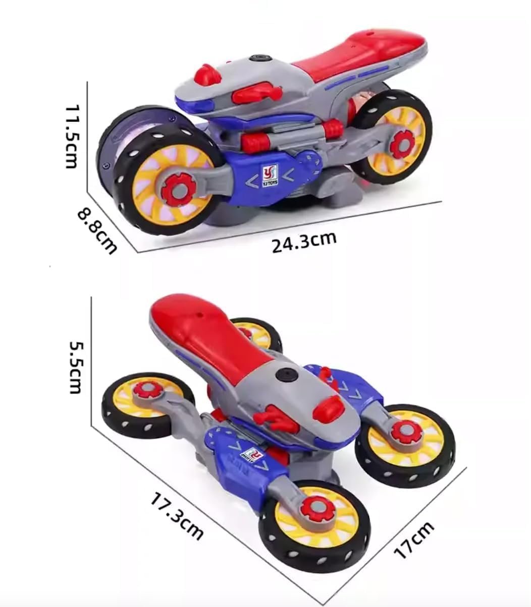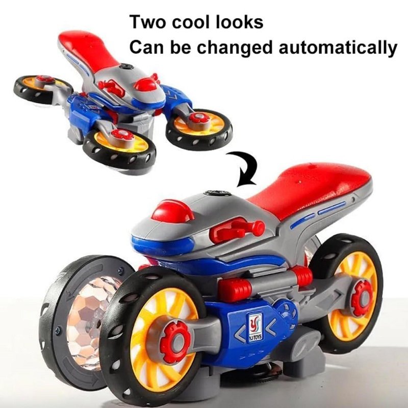 আপনার সোনামনির খেলার সময়টাকে আরও আনন্দময় করতে নিয়ে আসুন 360 Degree Motor Transformer Rotating Toy Bike! 🎉