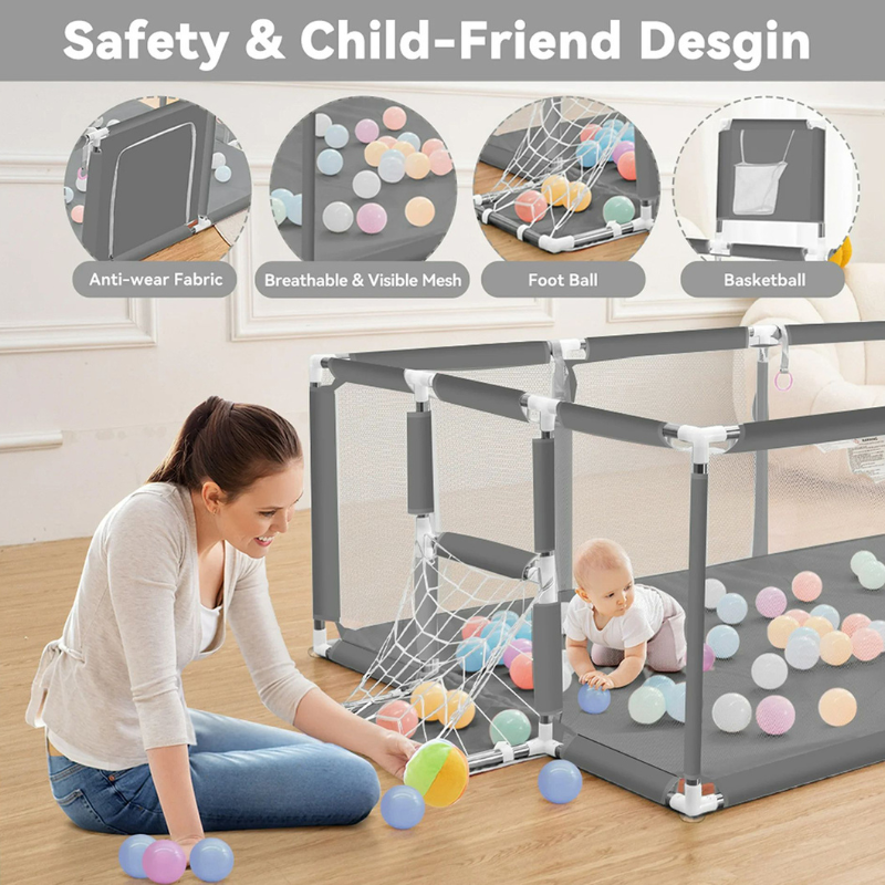 đļ Baby Safety Playpen with Basketball Hoop & Ball Pool