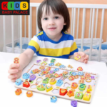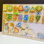 শিশু কাঠের সংখ্যা ও আকৃতি বোর্ডে বসিয়ে মিল খুঁজে শিখতে পারবে।