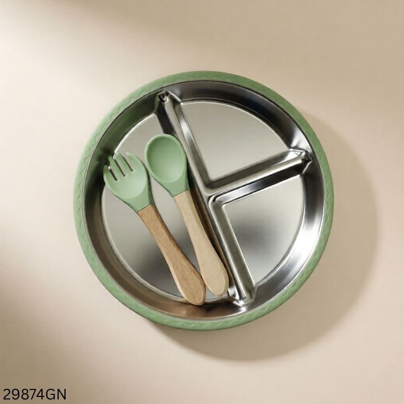 শিশুদের জন্য নিরাপদ ও টেকসই একটি ফিডিং প্লেট। উচ্চমানের স্টেইনলেস স্টিল বডি এবং ফুড গ্রেড সিলিকন রিম থাকায় এটি নন-স্লিপ, সহজে ধরা যায় এবং খাবার পরিবেশনের জন্য সম্পূর্ণ নিরাপদ। বেবি ও টডলারদের দৈনন্দিন খাবারের জন্য আদর্শ।