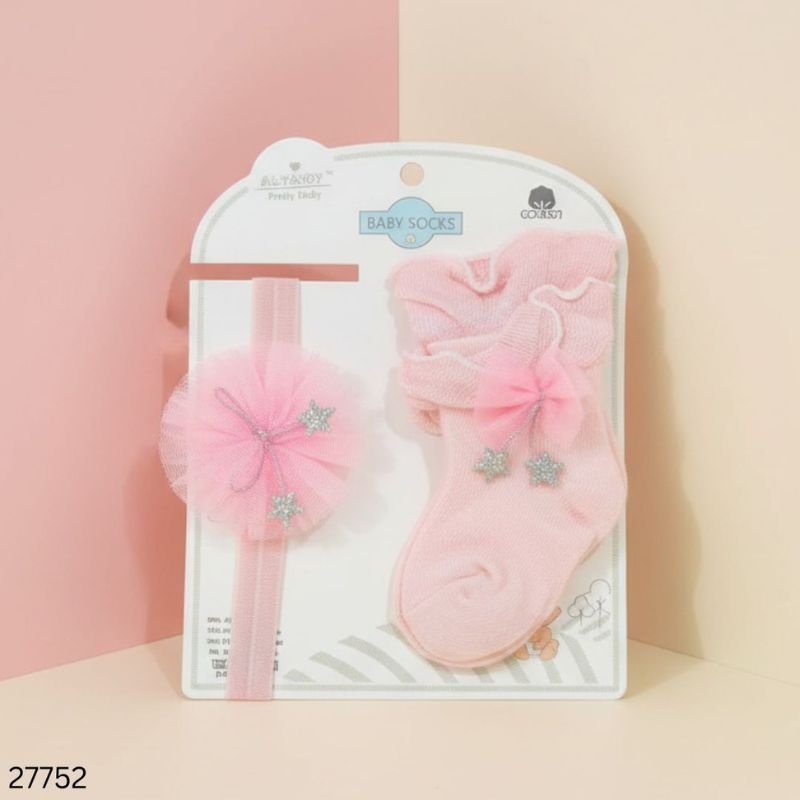 Girl Hair Band & Socks Set – নরম, আরামদায়ক এবং ফ্যাশনেবল, বেবির প্রতিদিনের স্টাইলের জন্য পারফেক্ট।