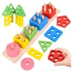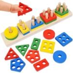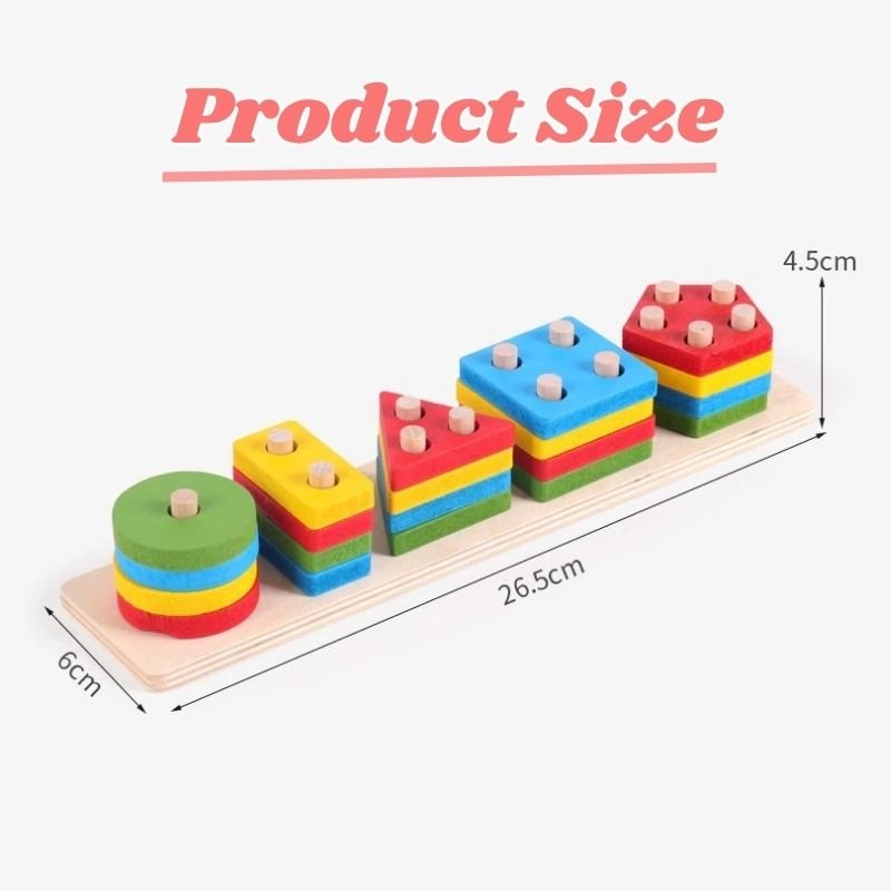 Long Wooden Shape Sorting & Stacking Toy Puzzle for Kids Learning