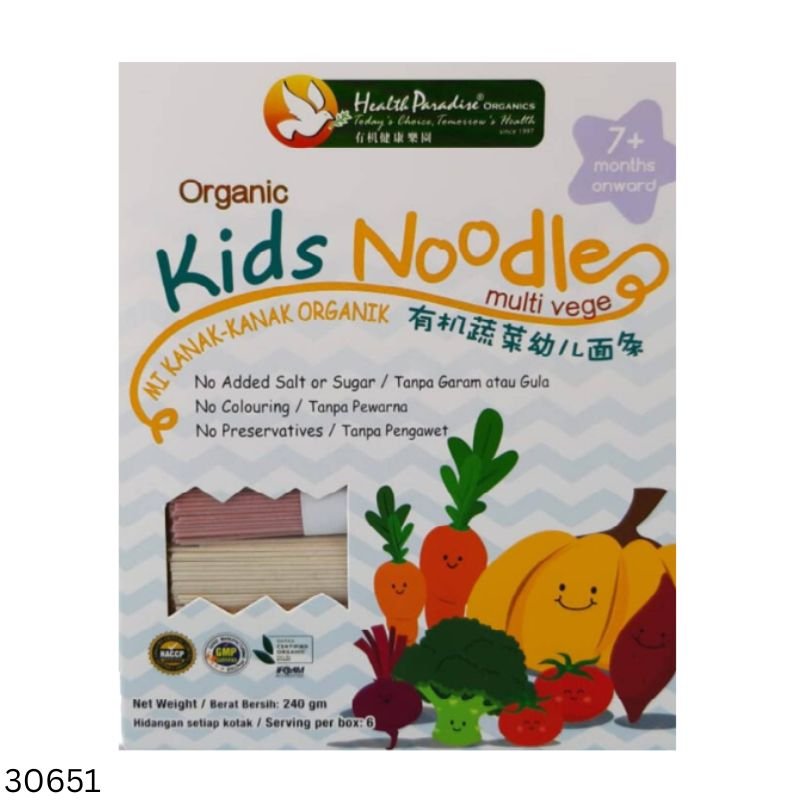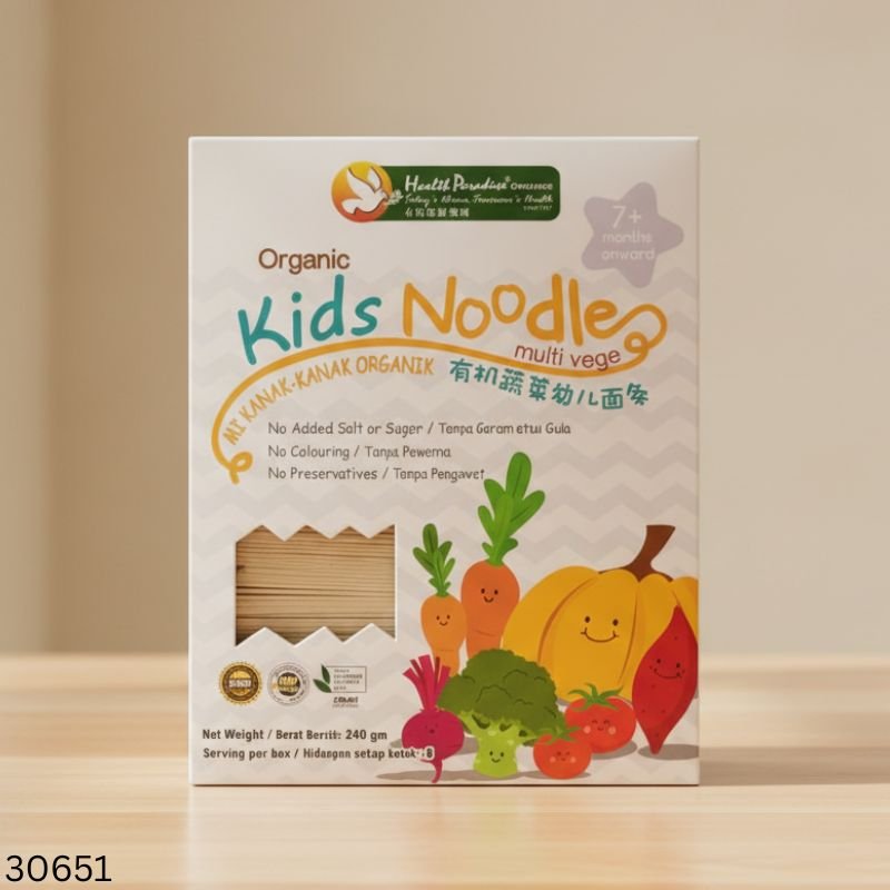 Organic Kids Multi Veg Noodles ৭ মাস বা তার বেশি বয়সী শিশুদের জন্য তৈরি একটি স্বাস্থ্যকর অর্গানিক খাবার। এতে রয়েছে বিভিন্ন সবজির পুষ্টিগুণ, কোনো অতিরিক্ত লবণ, চিনি, রং বা প্রিজারভেটিভ নেই—ফলে শিশুর নিরাপদ ও পুষ্টিকর খাবারের জন্য এটি আদর্শ