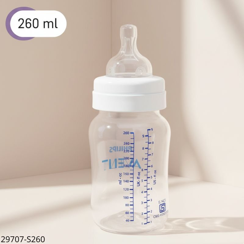 Made from BPA-free PP material, this baby bottle is safe, lightweight, and durable for everyday use. The soft silicone nipple supports a natural latch and smooth feeding. Suitable for babies 1 month and above, the 260ml capacity is ideal for daily feeding needs. This pack includes 2 bottles, offering added convenience for parents.